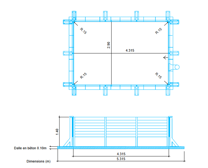 Sa structure en béton, renforcée par des traverses solides et des piliers, est complétée par une margelle en béton teinté et un support intérieur de 4 mm, assurant une stabilité maximale.