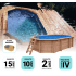 Piscine bois Lola Octogonale Allongée avec Plage Immergée + Escalier 541x336x131cm Pierre de Bali