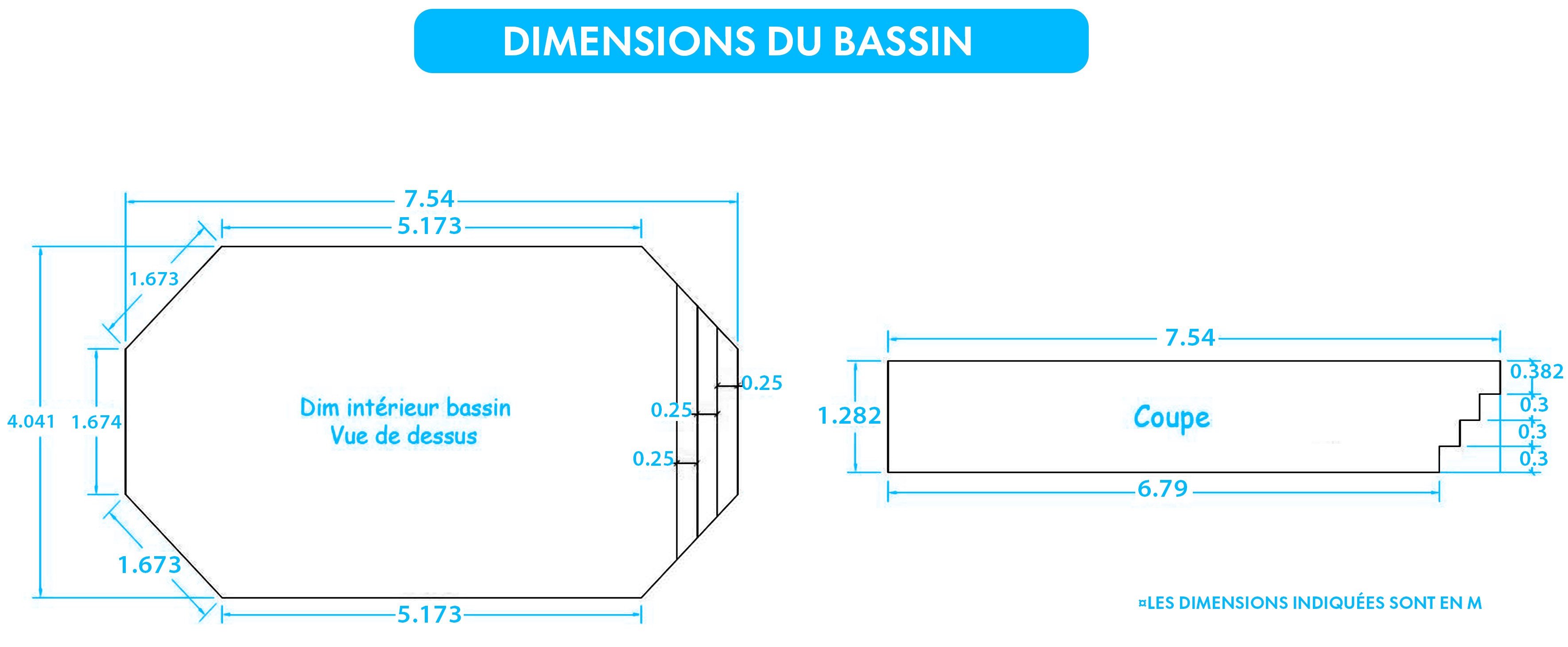 Piscine Bois PRESTIGE Octogonale allongée avec Escalier 807x457x131cm Liner Relief 3D