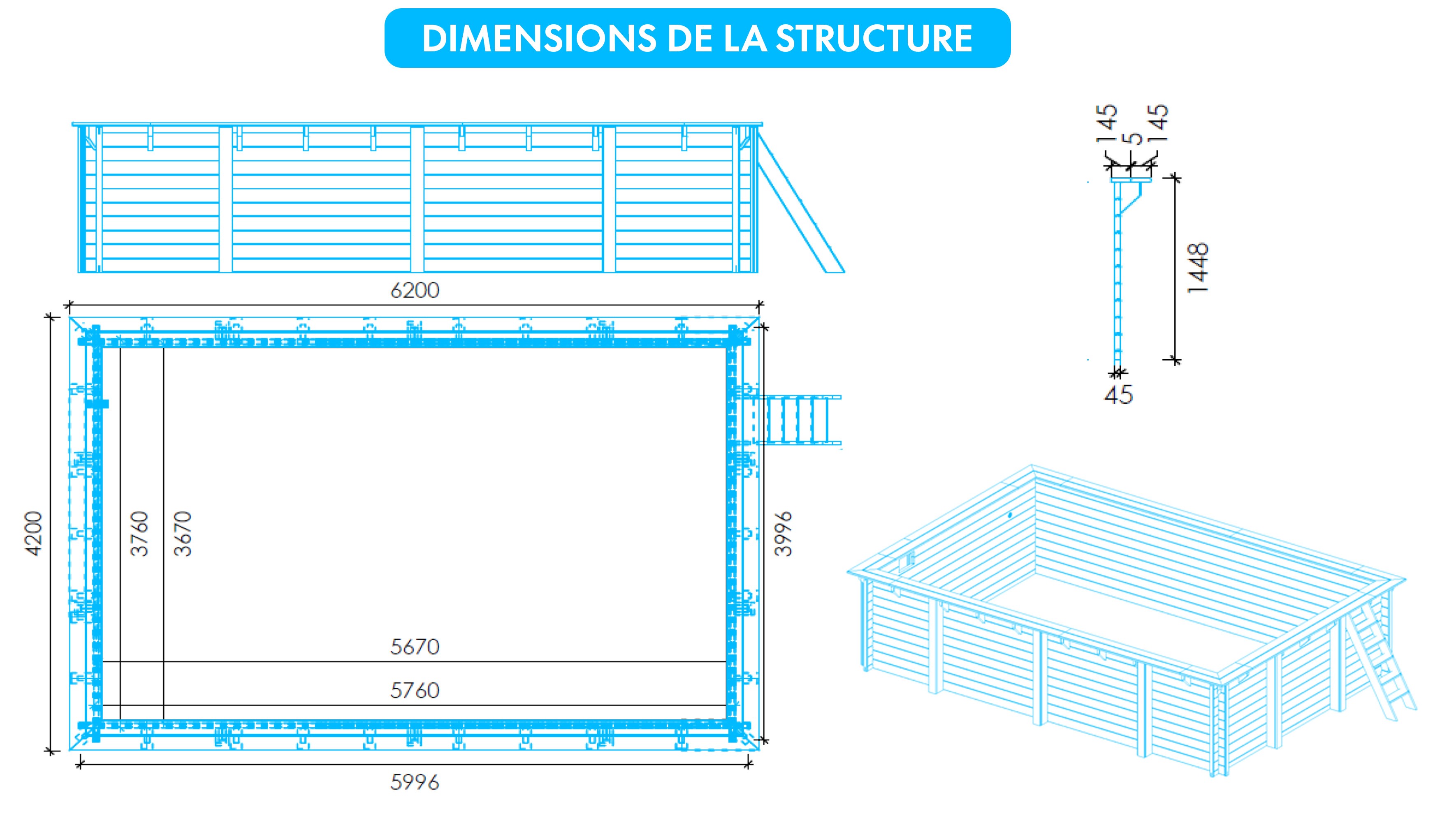 Offrez-vous un été d’exception avec la piscine bois SPARK 620x420x145cm, une exclusivité alliant design, robustesse et confort.