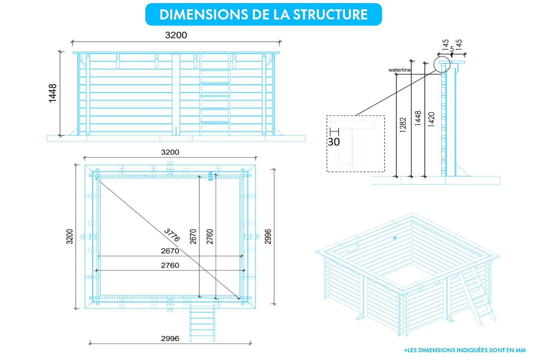 Piscine Bois Tropicana Carrée 320x320x145cm