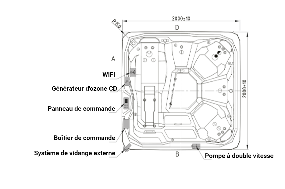 Spa Acrylique Carré SPARK 5 Places 200x82cm